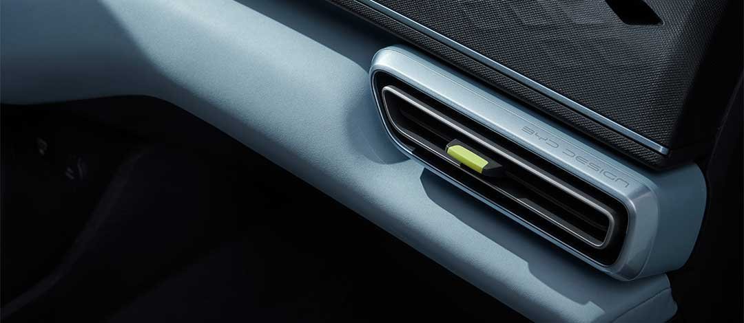 Ventilasi AC BYD Atto 1 dirancang dengan sentuhan gaya cyberpunk, menampilkan garis tegas berpadu aksen warna modern yang memikat. Desain ini bukan hanya memberikan kesan futuristik dan energik, tetapi juga memperkuat karakter.