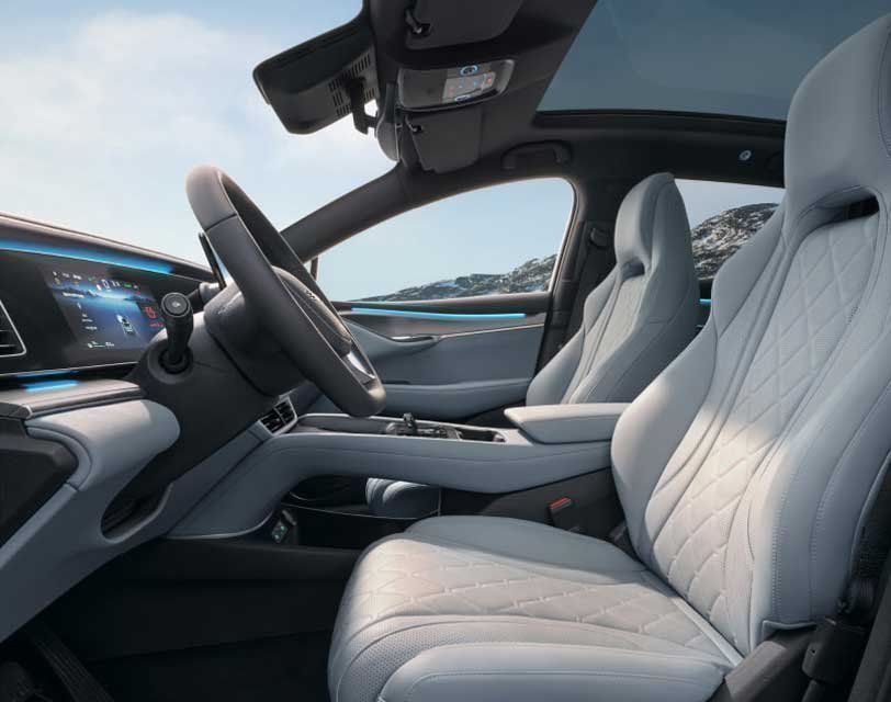 Rasakan kenyamanan premium dengan jok Nappa bertekstur quilted yang terbuat dari lebih dari 80% vegan leather lembut, menghadirkan nuansa mewah dan elegan pada interior BYD Sealion 7, sekaligus memberikan pengalaman berkendara berkelas dan bergaya.